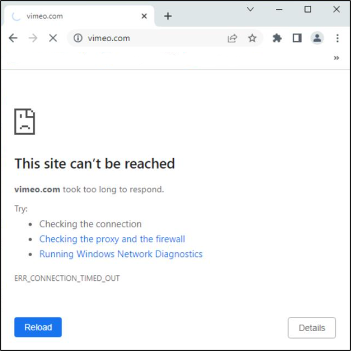 On December 14, 2022, reports started arriving that certain sites on the Internet could not be reached by faculty, staff and students at Duke. A screenshot from the user perspective is shown in Fig. 3, below. After looking into the growing list of sites we realized that there was likely a common issue impacting multiple sites and needed to explore this further.